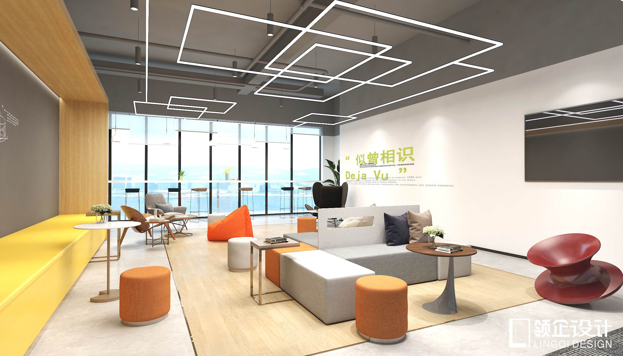 設計介紹:灰色為主,黑色的座椅,典雅,復古的墻磚鋪設,簡約靚麗的吊燈配飾,舒適優雅,屏風阻隔,辦公室內物質美學原理與古樸中式意蘊互相糅合更有中國風儒雅,凝重現代氣質。